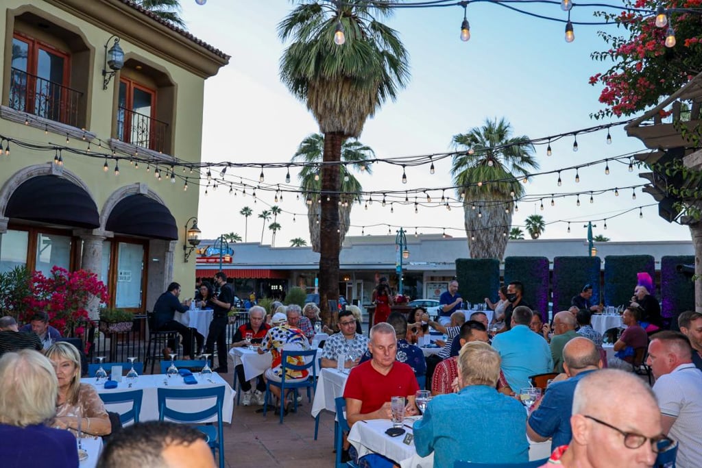 Diners seated in the courtyard at Oscar's in Downtown Palm Springs. (File photo) |