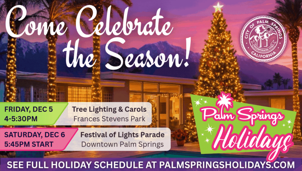 The holidays are in full swing in Palm Springs, and weβre here to try and help you sort through all the events. We've compiled a list of performances, Santa visits, toy drives, and more β and we're checking it twice to keep it updated.